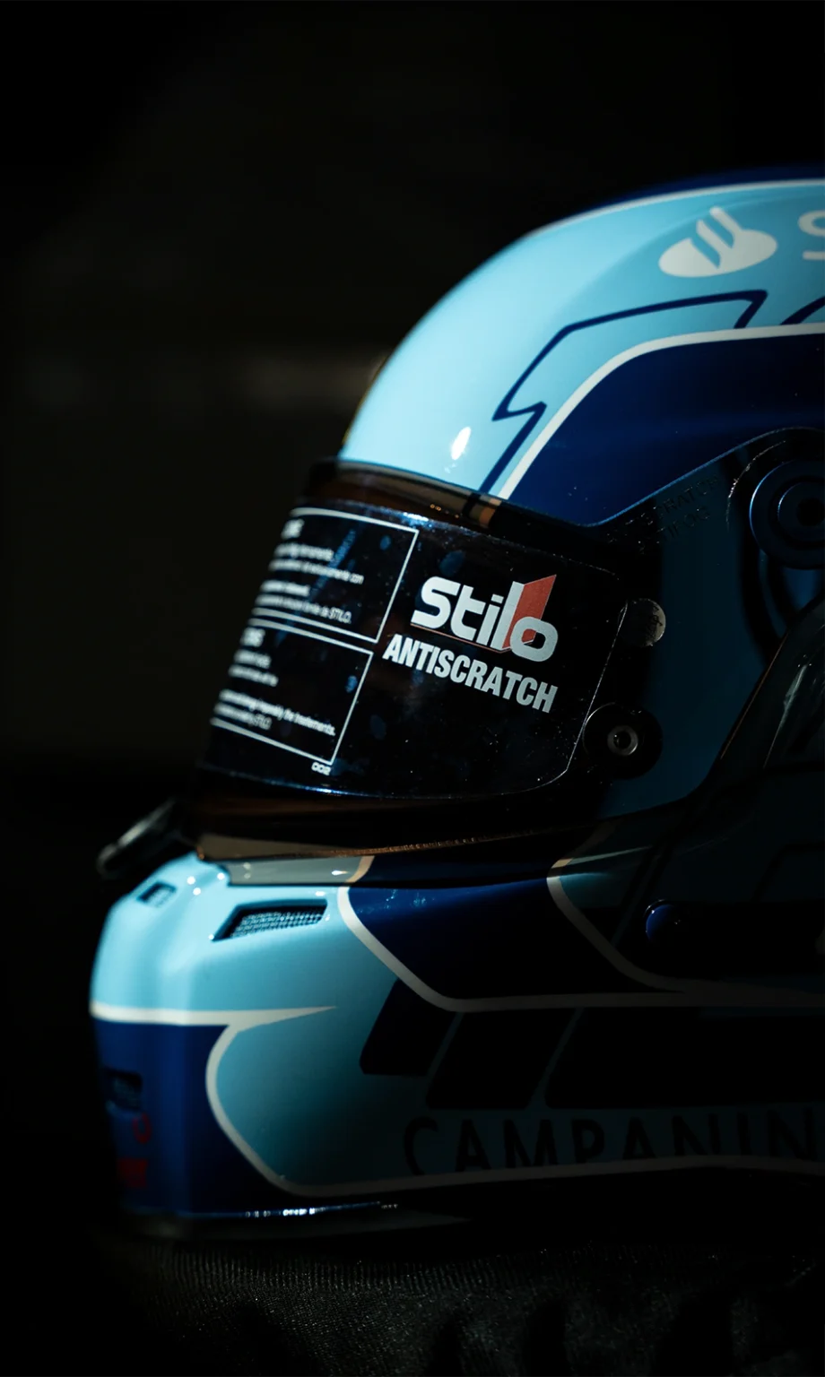 La superficie lucida riflette le luci della pista di Miami, mentre la visiera Stilo (con le pellicole protettive ancora applicate nelle foto) aggiunge un tocco tecnico e professionale al design “lifestyle”.